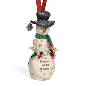 Birch Hearts 4" Snowman Ornament Holding Strings of Lights