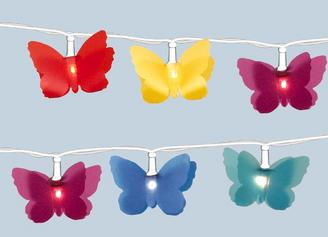 In icy multi-colors butterfly shapes. Perfect in any number of home settings, whether strung horizontally, wrapping a column or doorway, or arranged in a glass bowl as a center piece.