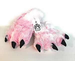 These warm and comfy slippers will keep your feet warm on those long winter nights. Slippers are made of the highest quality plush faux fur materials with a polyurethane foam padded foot bed. The stuffed animal claw slippers have non-skid soles made with traction grip dots for slip resistance. The unisex animal claw slippers have sizes to fit men, women, youth and children.